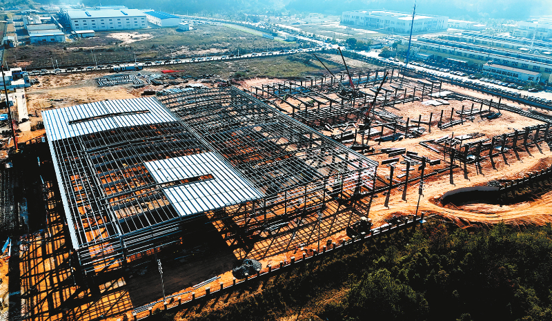 本报讯(通讯员 陈炳林 谢家进 梁兴桦 文/图)12月17日,在福建(龙岩)稀土工业园区的金龙稀土第三代高性能磁性材料数字化智造工厂(5000吨级)项目现场,机器轰鸣,塔吊林立,一派繁忙施工景象。目前,项目正在推进主体厂房钢结构工程及配套设施建设,百余名工人抢抓施工黄金期,紧张有序开展钢架结构厂房主体搭建、地基基础浇筑、地上混凝土结构浇筑等施工作业。