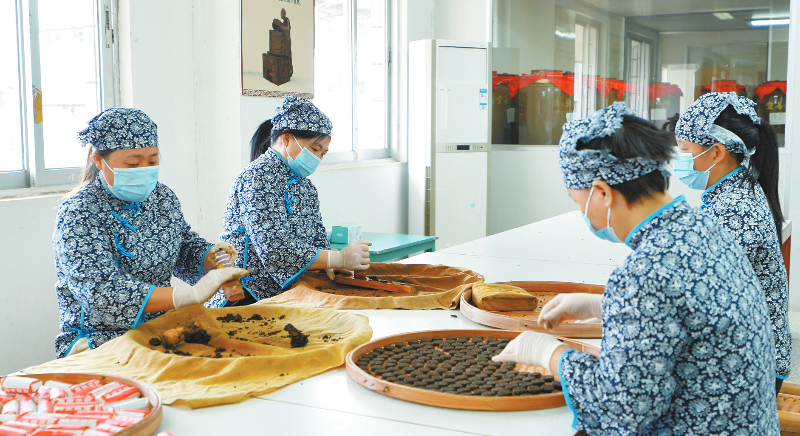 近日,永定区福建白云山采善堂制药有限公司工作人员正用百年未变的技艺,制作国家级非遗“万应茶”。今年8月,拥有逾200年历史的“中华老字号”采善堂正式加入广药集团,借助其强大的资源网络,“万应茶”非遗技艺加速产品化,其承接的仙草、金银花等药材采购业务交易额已超千万元。龙媒体记者 章宸睿 廖倩琳 摄
