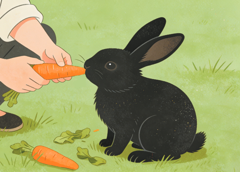 穿行在梅花山麓及周边的绿水青山之间,总有让人心仪的风景。柳暗花明时的乡野炊烟,寂静深山中的飞鸟虫鸣,山间沟壑里的流水清泉......也许是因为太熟悉的缘故,这些非比寻常的景致常常被熟视无睹。然而,就在这青山绿水间,在青草上、竹树下,突然一些浑身长着黑毛的小动物在草丛里像闪电一样击中你的眼球,给绿色的山林增添了更多的生机和活力,你的心中也许会留下这样的疑问:这黑色的像闪电一样的小动物怎么会在这绿树青草间蹦蹦跳跳?它长着长长的黑耳朵,浑身乌黑发亮的毛,动作那么轻巧灵动,要不是绿草与乌黑的毛发有鲜明的色觉视差,真很难辨出这些黑色动物是大自然里的什么物种?这是生活在梅花山麓及周边地区的稀有物种,叫乌兔。这个黑色小精灵从奔走山林来到烟火人家,有一段美丽的传说。在上杭障云岭深处的竹子寨住了一家蓝姓夫妇,以打柴狩猎为生,因媳妇体弱多病,结婚多年未得子嗣。有一天,蓝姓丈夫照例上山打柴狩猎,就在他弯腰砍柴时,看见不远处有一团黑乎乎的东西在蠕动,他忙放下手中的柴刀走进一看,原来一只黑兔。它黑色的眼睛看见有人跟过来,转身就往草丛深处跑。年轻的猎人紧跟其后,看见黑兔钻进草垛边的洞穴里,他掀开草丛,看见母兔带着5只小黑兔,那小黑兔毛茸茸的、胖乎乎的,像刚满月的样子,很是可爱。