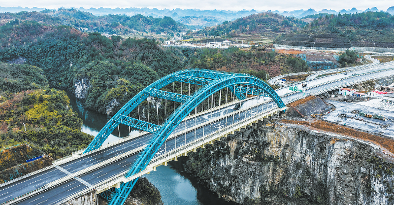 12月24日拍摄的贵平高速甲青特大桥(无人机照片)。当日,由贵州交投集团投资建设的贵阳至平塘高速公路顺利通过交工验收,即将迎来通车运营。贵平高速起于贵阳市乌当区羊昌镇,止于黔南布依族苗族自治州平塘县者密镇云阳关,项目路线全长174.018公里,设计时速100公里。新华社记者 陶亮 摄