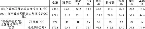 1-11月,100个重大项目完成投资283.4亿元,完成年度计划98.1%;300个省市重点项目完成投资729.1亿元,完成年度计划99.6%。全市参加“每季开竣工”互比互看活动竣工项目379个、总投资572.6亿元。