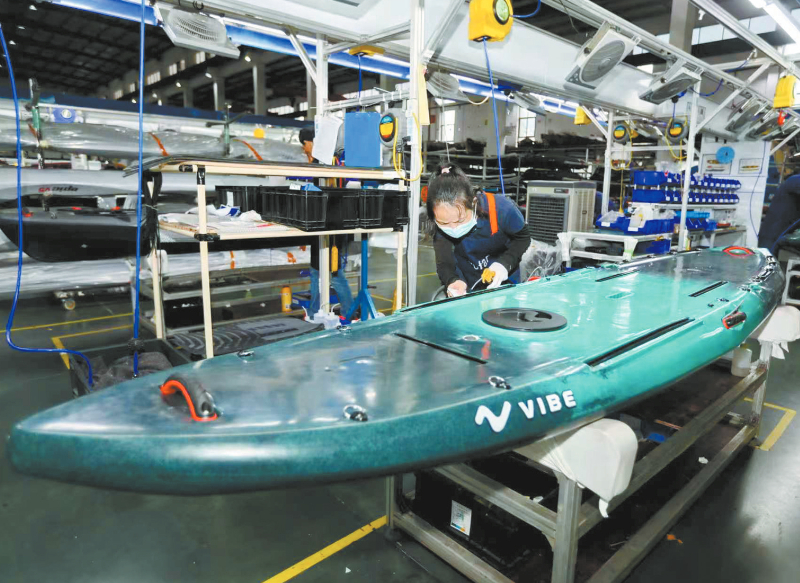 近日,位于渡远户外运动用品有限公司的三期生产线上,工人正在生产高端皮划艇。因为使用了复合材料和真空吸塑技术,该款高端皮划艇重量比传统产品轻一半以上。深耕行业多年的渡远,组建了高层直管的创意设计团队,从最初的小微型水泵、皮划艇,拓展到游艇专用马桶、桨板等产品,累计拿下200项境内外专利,70多个产品系列覆盖低中高端市场。 通讯员 黄水林 摄