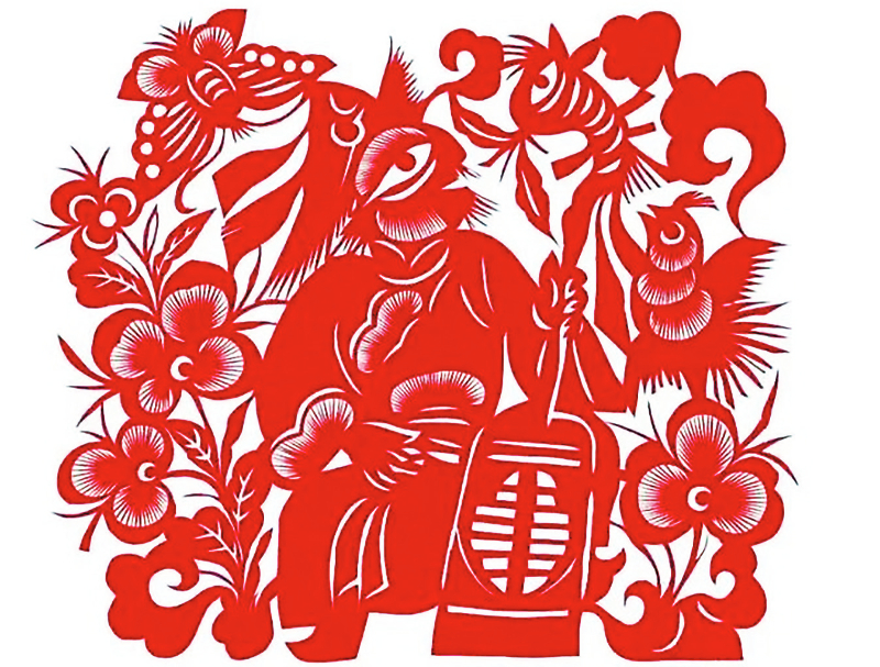 祖母剪纸时,我总蹲在一旁,看着小剪刀在她掌心翻飞,纸屑落在簸箕里,像簌簌落下的时光。祖母没上过学也不认识字,但对客家剪纸情有独钟。春节前,剪好一叠如福、春、吉、寿、丰、安等红字,过年时贴在大门上,红红火火的景象立马在眼前闪亮。