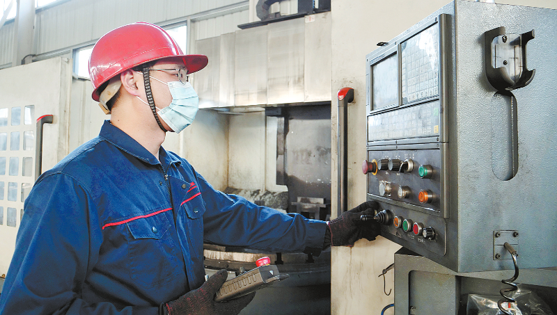 图为工人在操作生产设备。