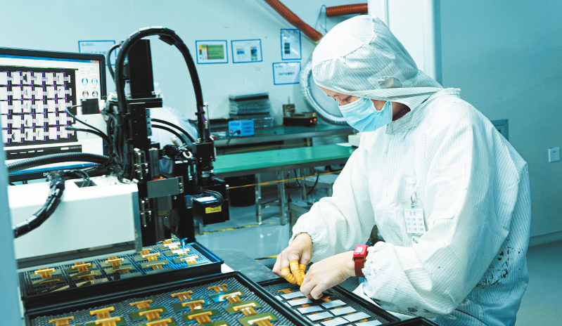 福建希恩凯电子有限公司生产车间内工人正在生产液晶显示屏