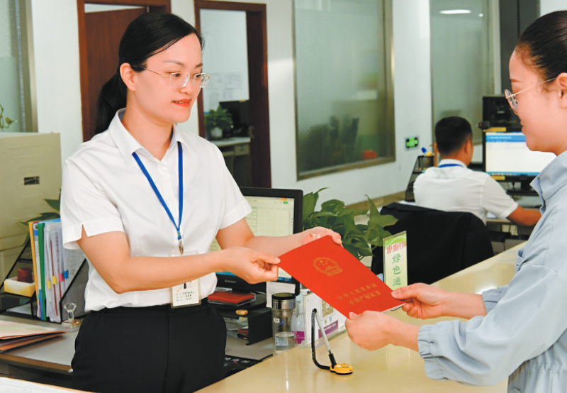 在永定区不动产登记中心,主任孔玉琴深耕登记服务一线,牵头推出“交房即交证”“带押过户”等系列惠民利企举措,破解“登记难”问题,相关经验获全省推广。“作为预备党员,深学笃行全会精神,就要立足本职,扛起服务发展、便民利企的担当。”孔玉琴表示,将持续推动“互联网+不动产登记”升级,优化流程,攻坚难题,以严实作风办好每笔业务,助力营商环境提升,用登记的“小窗口”服务发展“大格局”。