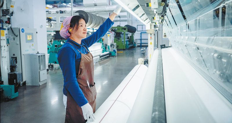 新兴新纺织是一家以外贸出口为主的纺织印染企业,2022年从深圳搬迁落户新罗,集针织产品、织造、印染、研发于一体,年产纬编、经编、蕾丝、印花等产品1.5万吨以上,年产值近20亿元。“目前订单已排到3月底,我们正全力生产。”企业负责人介绍。产销两旺的背后,离不开企业持续推动的精细化管理和技术升级。近年来,公司不断加大研发投入,引进先进工艺,优化产品结构,有效提升了产品附加值和市场竞争力。