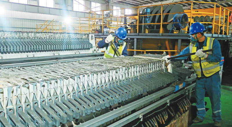 本报讯(通讯员 温连光 严婕 文/图)近日,笔者走进新罗区天创再生资源有限公司生产车间,只见自动化生产线高速运转,机械臂精准作业,工人紧盯参数巡检分拣,封装完好的次氧化锌成品整齐码放,即将发往全国下游企业。项目投产以来,订单源源不断、生产排期饱满。