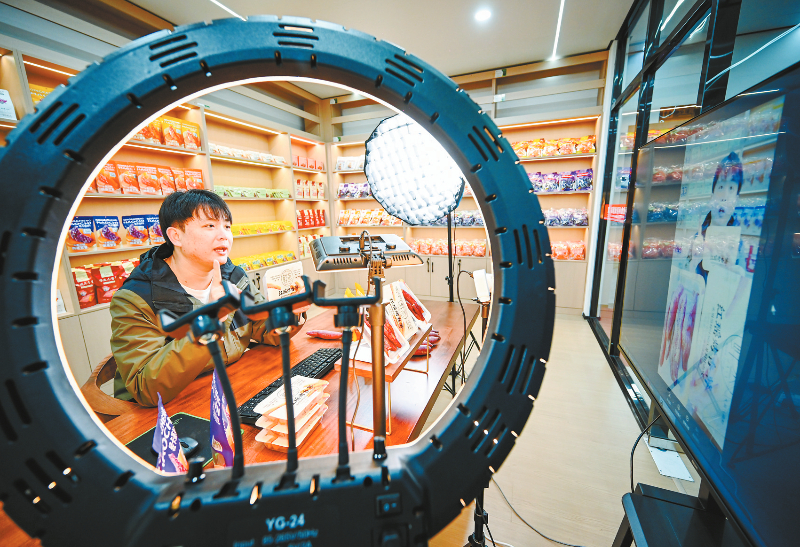 烤香薯直播带货现场。龙媒体记者 方晨颖 摄