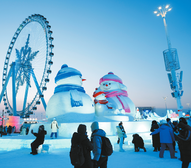 这是1月27日拍摄的哈尔滨冰雪大世界园区内的冰雪景观。寒冬时节,哈尔滨冰雪大世界园区流光溢彩,吸引了来自天南海北的游客观赏游玩,畅享冰情雪趣。新华社记者 王松 摄