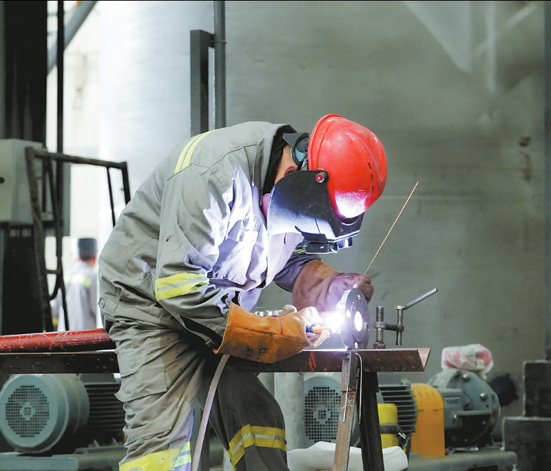 图为工人进行设备安装调试。