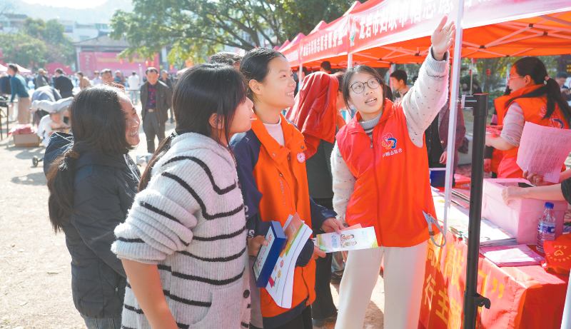 来自全市27家主联办单位的志愿者们搭起便民服务展台,活动突出创新服务形式和内容载体,除文化、科技、医疗、教育等常规服务外,更有“新农人”农产品直播带货、机器人展演连城拳、无人机模拟农作、消防“逃生屋”体验、国防教育主题全家福拍摄等特色项目,真正把温暖服务送到家门口,受到当地群众广泛好评。