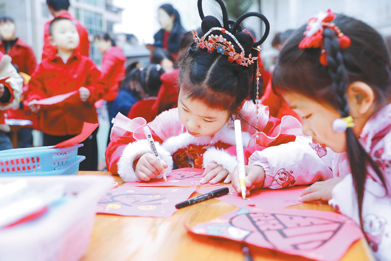 寒假前夕,漳平市下桂林幼儿园开展“金马迎春福满堂·园家同心贺新年”为主题的家长开放日活动。剪窗花、画年画、话春节......这场以民俗为纽带的双向奔赴之约,将传统年味与幼儿成长深度融合,为新年伊始勾勒出最美的民俗育人画卷。通讯员 郑桂美 陈丽霞 摄