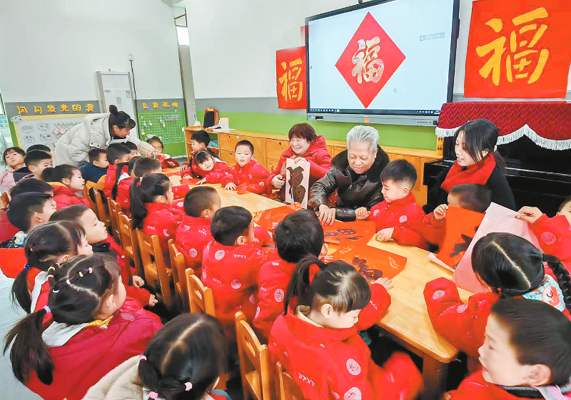 寒假前夕,连城县冠豸幼儿园、莲峰镇栗园社区共同开展“非遗冠幼·福莲乐园”活动,邀请社区八旬老人教授37位小萌娃们非遗传统手工剪福字、说福语,场景定格在福乐温馨的欢乐时光。通讯员 邹善水 罗蓉 摄