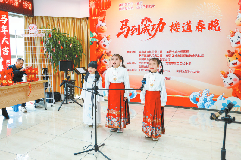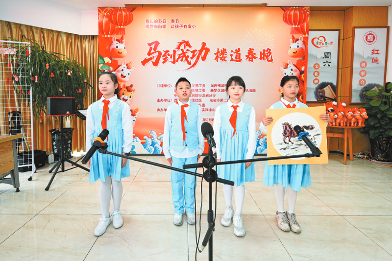 本报讯(龙媒体记者 高秀珍 方晨颖 文/图)新春走基层,让寻常艺术飞入百姓家。在马年春节即将到来之际,一场以“马到成功”为主题的楼道“春晚”,于2月8日上午在新罗区西陂街道华莲社区新时代文明实践站温情启幕。近百名居民欢聚一堂,以自编自演的节目、邻里守望的温情,共赴这场充满烟火气的新春之约。
