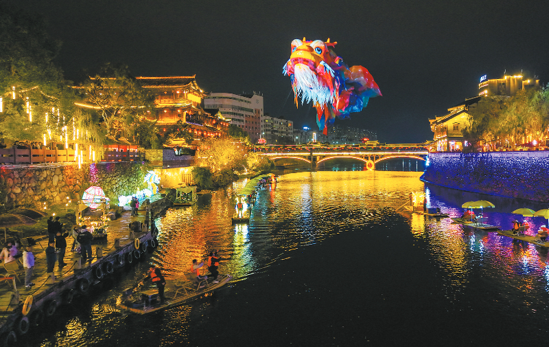 全城联动狂欢,延续客家年味。据了解,此次三元阁开城仪式将从正月初一持续至初七,每日定时多场次上演。同时串联起光影秀、非遗百艺风华录、巨型空飘鳌鱼花灯巡游点亮夜空等活动,让千年文脉在烟火气中焕新彩,一场场精彩文化盛宴,点亮古城新春浪漫。