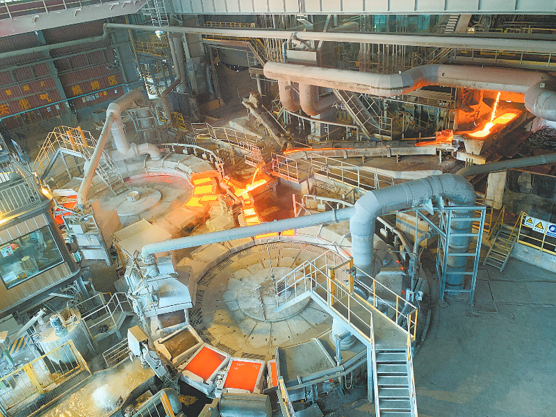 春节期间,上杭紫金铜业有限公司的生产车间里,机器运转不停,工人们坚守岗位,开足马力拼生产。图为该公司熔炼厂阳极炉浇筑作业。 通讯员 杨国鑫 摄