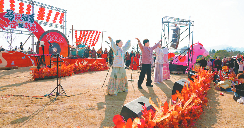 本报讯(通讯员 黄水林 江钰婷 文/图)2月18日,连城县冠豸山下的福莲非遗文化生态园里,“马跃冠豸 音悦新春”草坪音乐会热闹开演,这场户外音乐盛宴将客家民俗、流行旋律与文明旅游宣传相融,让市民游客在青山环抱间乐享马年新春。