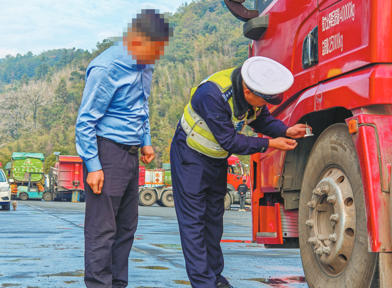 2月11日,新罗交警对适中货车临时加水区的重型货车进行安全检查。