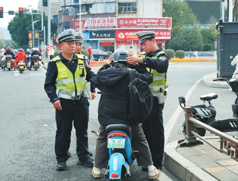 2月14日,连城公安在街头开展违纠,对不戴头盔违法行为进行纠正。