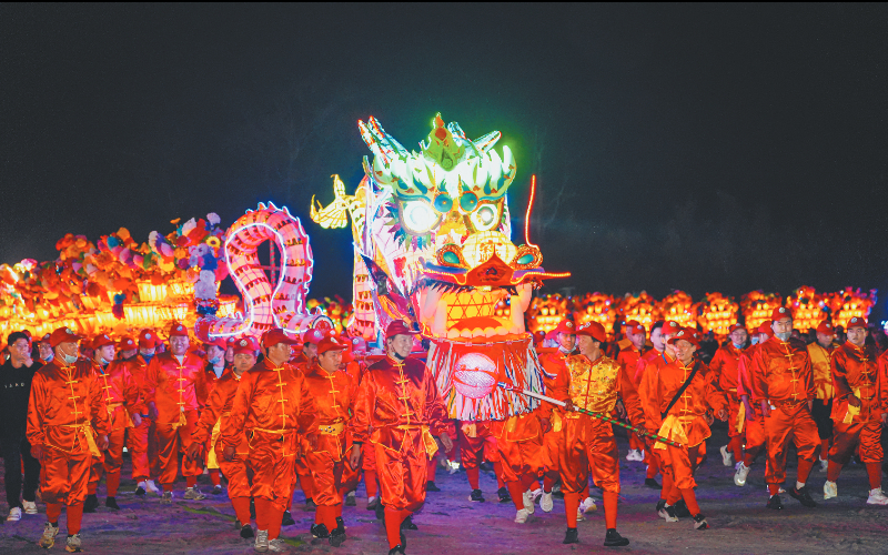 这条“长龙”以长条板凳为龙骨、镶嵌五彩花灯为龙身,凭借“一家出一节、百人共舞”的形式,将龙的传人的团结精神化作流动的灯火。花灯璀璨下、龙身蜿蜒处,是乡亲们对新岁“风调雨顺、五谷丰登”的虔诚祈愿,更是被誉为“行走的民俗博物馆”的活态传承。
