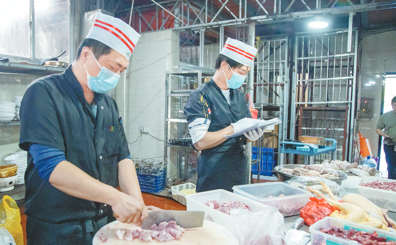 “刺啦......”45岁的张慧鹏师傅正站在猛火灶前,翻炒着锅中色泽诱人的笋干五花肉。他已在这里工作了十个年头,而十个除夕,他无一例外都是在灶台前度过。