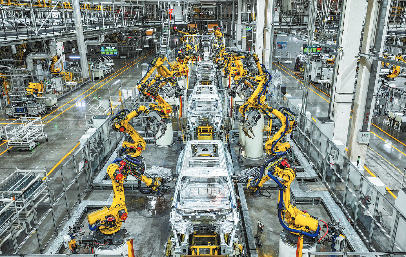 位于重庆市两江新区的赛力斯汽车超级工厂拍摄的自动化生产作业现场(2025年9月19日摄,无人机照片)。新华社记者 王全超 摄