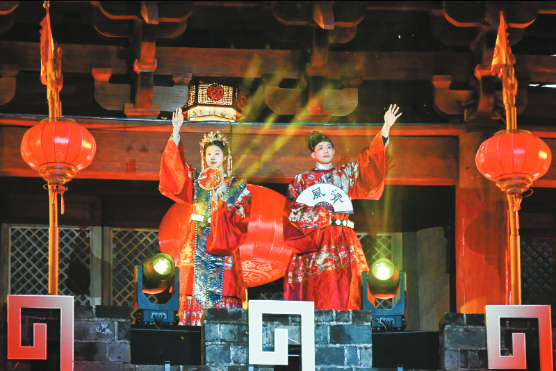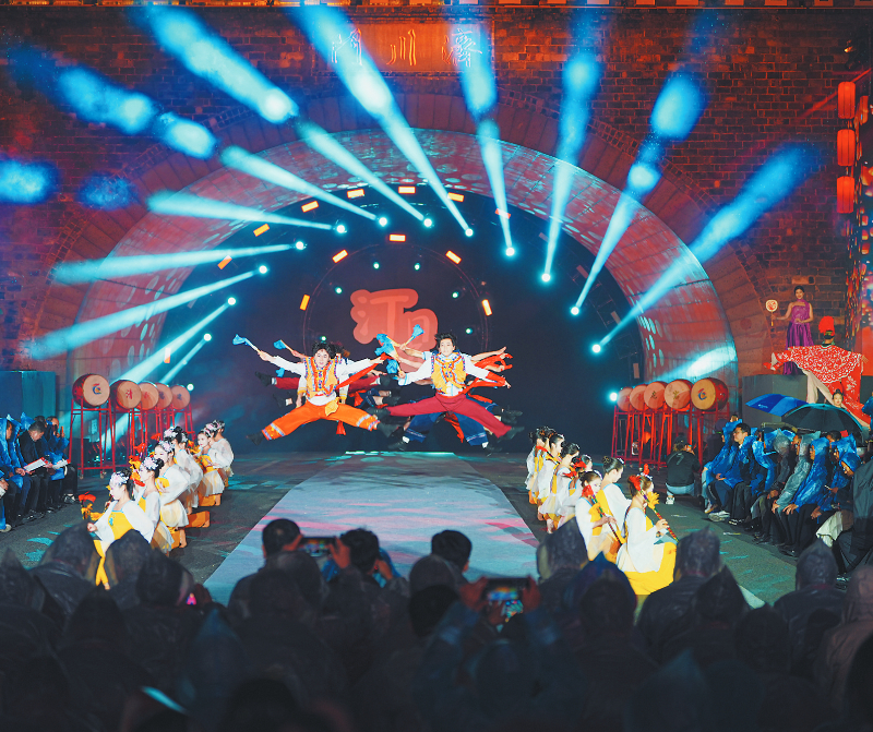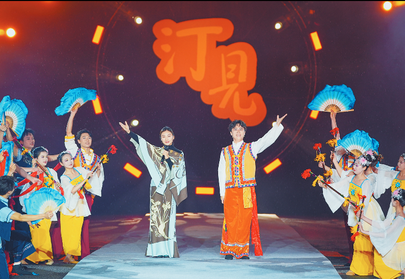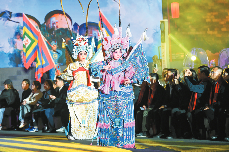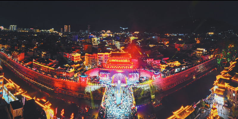 今年的舞台不再局限于方寸之间。雄伟的济川门化身为最恢宏的主舞台,古城墙、汀江水、水东桥则被打造成流动的T台。咏春拳的招式划破光影,寸劲迸发;闽西汉剧的高腔与采茶灯的欢快旋律交织回荡,漫过汀江;木偶戏的灵动遇上十番器乐的悠扬,活灵活现;客家童谣的软糯与木桐号子的浑厚相撞,穿透夜色;萌娃汉服走秀萌态可掬,非遗时尚大秀则把客家记忆融进时代气息——光影摇曳间,这座千年古城再现“灯火家家市,笙歌处处楼”的繁华盛景,以满城璀璨,笑迎八方来客。