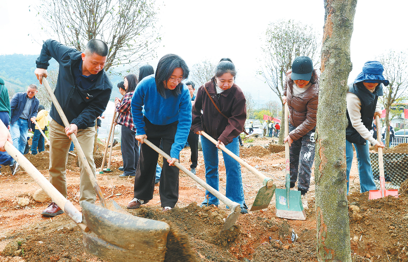 昨日,龙岩市融媒体中心组织党员及共青团员前往新罗区铁山街道开展“龙媒力量植青 党建引领映初心”植树节主题活动,深入践行“绿水青山就是金山银山”发展理念,以实际行动助力乡村振兴和生态环境改善。 龙媒体记者 谢泽铧 摄