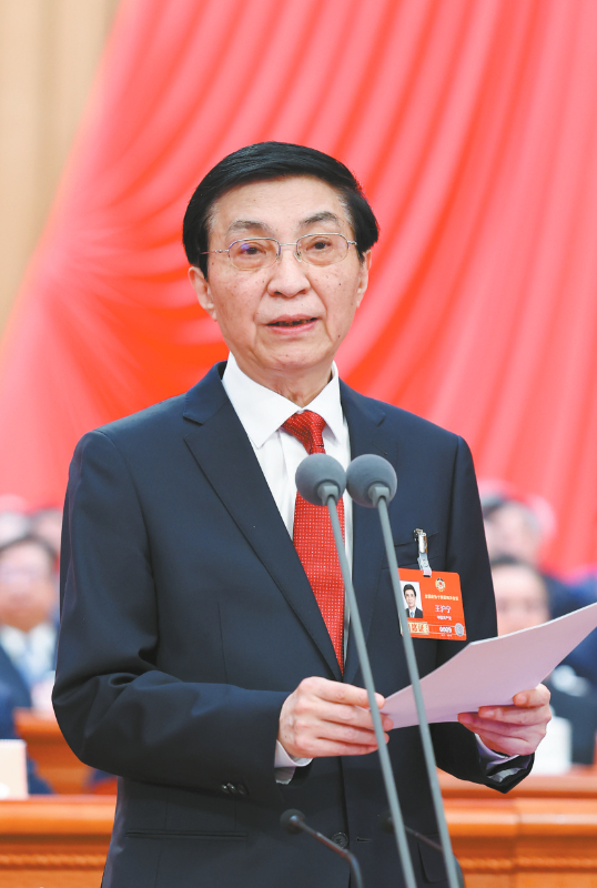 全国政协主席王沪宁主持闭幕会并讲话。新华社记者 黄敬文 摄