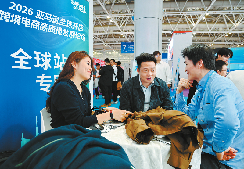 3月18日,客商向参展商代表(右一)咨询商品跨境出海流程。当日,第六届中国跨境电商交易会暨外贸优品中华行(福建站)在福州开幕。本届跨交会展览面积突破10万平方米,汇聚来自全国80多个跨境电商产业带的3300多家供应链和服务企业,以及来自印尼、越南、新加坡、韩国、日本等国家和地区的参展商参展。新华社记者 林善传 摄