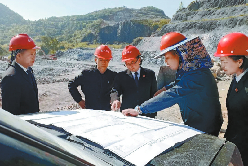 武平法院法官深入工地,与当事人现场勘查的情景。