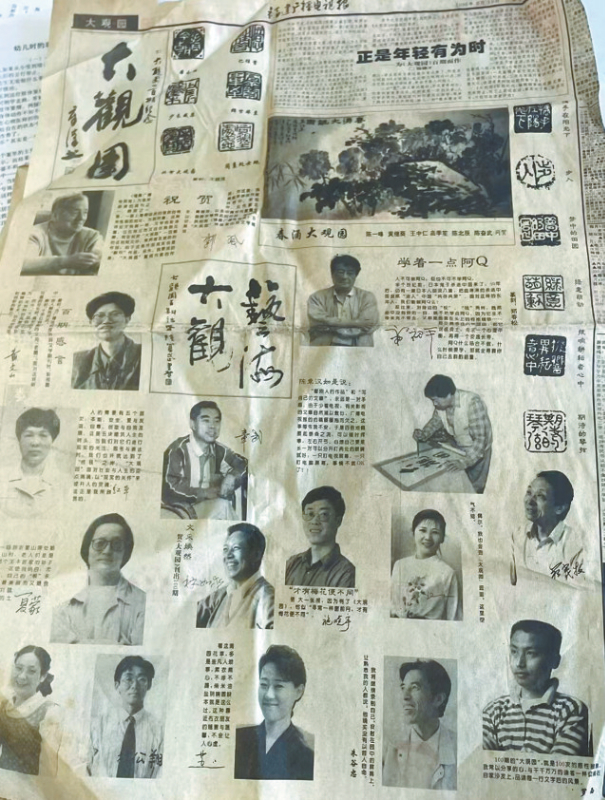 罗西晒出的这张1996年6月19日《福建广播电视报》的副刊版,是为了庆贺“大观园”出版100期的,很有纪念意义。正中配有福建省书法家协会原主席陈奋武为100期“大观园”题写的贺词:“艺海大观”。这期“大观园”刊登了16位福建省老中青作家的个人照片,每位作家还应邀为“大观园”题词,附在个人照片下面。我的题词是引用宋代诗人杜耒(lěi)的诗句,表达庆贺的美意: