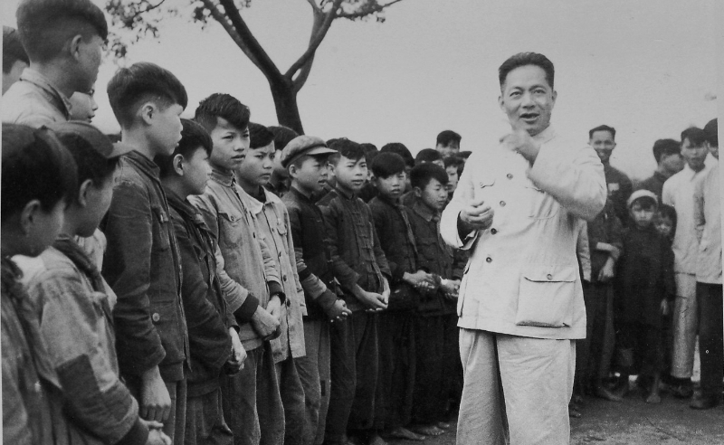 一九六○ 年,陈丕显回上杭南阳看望母校师生。(资料图)