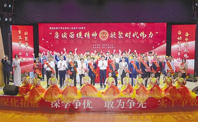 4月29日,为庆祝中华全国总工会成立100周年,2025年“全国劳动模范和先进工作者”风采展示暨职工文艺展演活动在南平大剧院举行。本次活动由南平市总工会主办, 以“赓续劳模精神 凝聚时代伟力”为主题,礼赞劳动者,凝聚奋进力量,大力弘扬劳模精神、劳动精神、工匠精神。 现场还举行了全国劳模、全国先进工作者人物访谈等活动。来自全市200余名职工代表参加现场活动,近50万人次线上观看了直播。图为活动现场。 (张行健 摄)