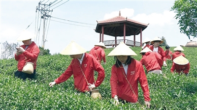 近日,中国人民大学70余名师生走进武夷山,开展社会实践活动。在为期三天的活动中,他们实地考察了武夷山国家公园、朱熹园、燕子窠生态茶园、建盏文创园、武夷山国家公园1号风景道等地,切身感受当地优良生态环境、优秀传统文化。他们还深度参与武夷岩茶采摘、制作全过程,体验武夷山的特色茶文化。图为师生在生态茶园采茶。 (何浩 伍凯文 摄)