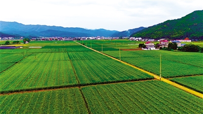 麻沙镇长坪村的广袤田野上,秧苗翠绿挺拔。