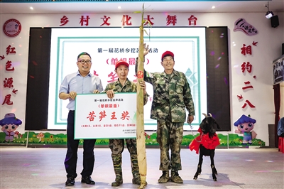 经过40分钟激烈角逐,源尾村队挖到的单根重6.6公斤的苦笋被评为“苦笋王”,并以单队苦笋总重量296.75公斤的优势夺得“状元笋奖”。“我是土生土长的源尾人,从小到大挖过无数笋,还是第一次参加这么热闹的活动,也很难得能挖到单根这样大的苦笋。”挖到“苦笋王”的源尾村村民江诗飞说。