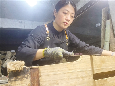 建州古琴制作流程包括选材、凿制、刮削;包麻布、上庄漆;安装天柱、地柱、弦板、龙龈、岳山、弦轴、琴齿、琴桥等。(图片由作者提供)