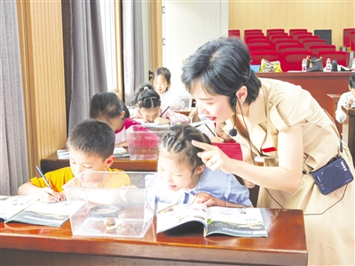 为搭建城乡教育资源共享平台,促进区域教育质量协同提升,6月5日,延平区教师进修学校,联合南平师范学校附属小学开展骨干教师送培送教教学研讨暨南师附小科学教育专题送培送教活动。围绕“优质均衡促发展 城乡联动共提升”主题,南平师范学校附属小学的教师们赶赴延平区塔前中心小学,带去了生动有趣的课堂教学。图为老师与学生在课堂上开展互动。 (陈军 摄)
