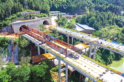 11日,随着沙南高速公路A6合同段最后一段梁块安装完成,至此,沙南高速公路主体工程全线贯通。该项目是福建重点项目,项目建成后,沙县至南平的通行时间将由2.5个小时缩短至1.5小时内,预计2025年底通车。图为项目施工现场。