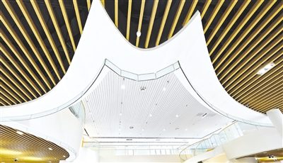 二层书山,中庭位置以“书山有路”为造型灵感。它不仅是连通楼层的物理通道,更是一座象征求知进步的立体雕塑,诠释书籍是人类进步的阶梯。
