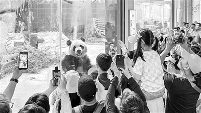 6月15日,市民、游客在温州动物园熊猫馆观看、拍摄大熊猫。当日,归国大熊猫 “宝弟”和“宝妹”在浙江省温州动物园熊猫馆与市民、游客见面。这对双胞胎大熊猫于2019年出生于比利时,深受当地民众喜爱。2024年底,“宝弟”“宝妹”结束旅比生涯回到中国。2025年6月7日晚,双胞胎大熊猫从中国大熊猫保护研究中心抵温,经一周适应,顺利与公众见面。(新华社发 刘吉利 摄)
