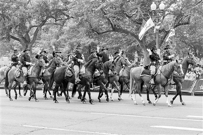 这是6月14日在美国首都华盛顿拍摄的阅兵式。 (新华社记者 胡友松 摄)