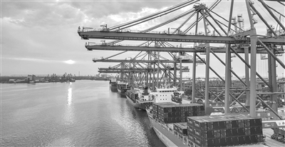 6月16日,轮船停泊在河北唐山港京唐港区集装箱码头作业(无人机照片)。5月份,全国规模以上工业增加值同比增长5.8%。 国家统计局6月16日发布的数据显示,今年5月份,国民经济顶住压力平稳运行,生产需求稳定增长,就业形势总体稳定,新动能成长壮大,高质量发展向优向新。 (新华社发 刘满仓 摄)