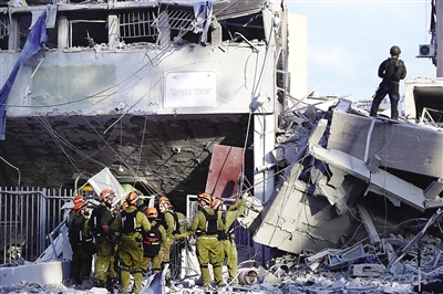 6月16日,在以色列布内布拉克,应急和救援人员在一处导弹袭击现场开展工作。 据伊朗塔斯尼姆通讯社16日报道,伊朗当天凌晨对以色列发动了新一轮导弹袭击。这是伊朗伊斯兰革命卫队“真实承诺-3”行动的第八轮导弹袭击。 (新华社发 托默·诺伊贝格摄/基尼图片社)