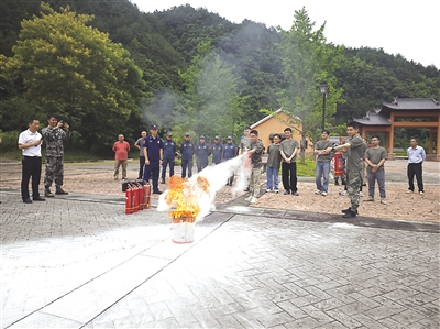 日前,政和县消防救援大队走进外屯乡开展培训演练,外屯乡应急分队、外屯派出所、琅嬛旅游公司等单位人员参加培训。消防员结合典型火灾案例,讲解如何处置初起火灾,如何快速有效疏散逃生以及常见消防器材的使用与维护等消防安全知识。图为消防员组织参训人员使用灭火器灭火。 (邵康有 摄)