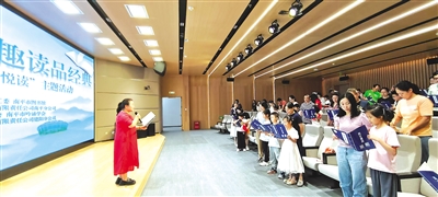 15日,由中共南平市委市直机关工委、南平市图书馆、福建新华发行(集团)有限责任公司南平分公司主办,南平市直机关工会联合会、南平市吟诵学会、福建新华发行(集团)有限责任公司建阳分公司承办的“书香润机关 趣读品经典”南平市直机关亲子“悦读”主题活动在南平市图书馆(武夷新区)举办,共有50余对市直机关干部职工及其子女参与。
