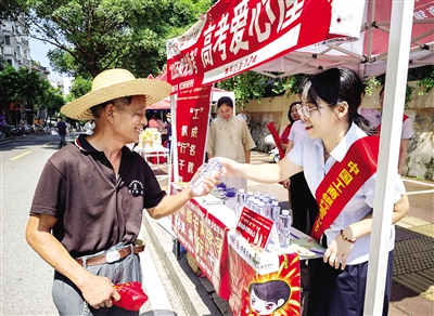 “六个一”志愿服务包括了考前用一封倡议书,呼吁全社会共同营造一个安静舒适的备考环境。一场直播心理课,抚慰考前焦虑。考中,一辆辆“爱心送考车”,搭载希望奔赴考场。一幢幢“助考爱心屋”,为考生和家长提供歇歇脚、纳凉的休息地。考后,一堂志愿填报辅导课,为7000名考生及家长提供专业的志愿填报指导。一个“爱心助学包”,每年为中考学子送出20份“爱心助学包”。