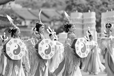 6月21日,演员在公祭伏羲大典上表演乐舞告祭仪式。